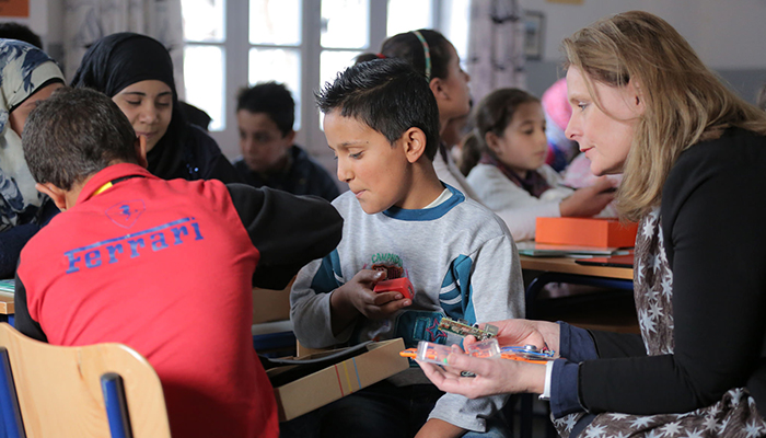 Kano has already reached Syrian refugee children in Lebanon. The first set of these innovative kits rolled out last month as part of a pilot project in Lebanon in a double-shift school to support learning for Syrian refugee children. Sarah Brown, Executive Chair of GBC-Education and President of Theirworld, recently traveled to Lebanon to visit these children and distribute the kits. She remarks: “The children were excited to play with the kits, build and learn about coding.”